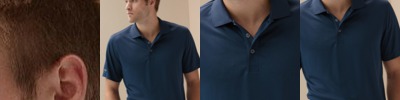 - Button-down collar with white pearlized buttons