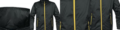 - Contrast center front zipper with set-in sleeves
