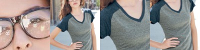 - Contrast color neck trim and sleeves