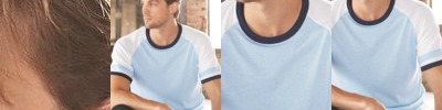 - Contrast half-moon facing and woven tape at back of neck