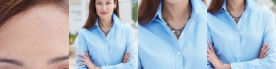 - White pearlized four-button placket