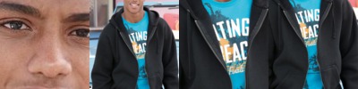 - Contrast hood and sleeves