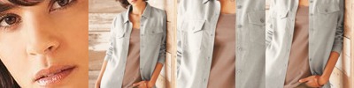 - Feminine silhouette with front and back darts