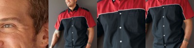 - Button down collar, shoulder epaulets