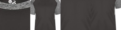 - Contrast color three-quarter sleeves and three-eighths inch neck binding